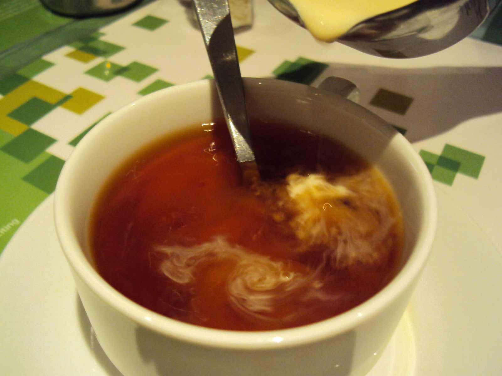 The soup was in green colour and I actually had no idea what soup was that but if not mistaken….it is cream of broccoli soup. This was the first time I tasted cream soup which was gluey but not creamy.