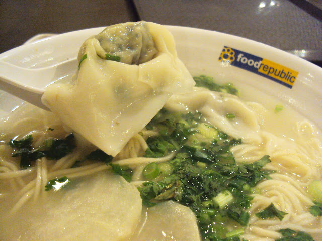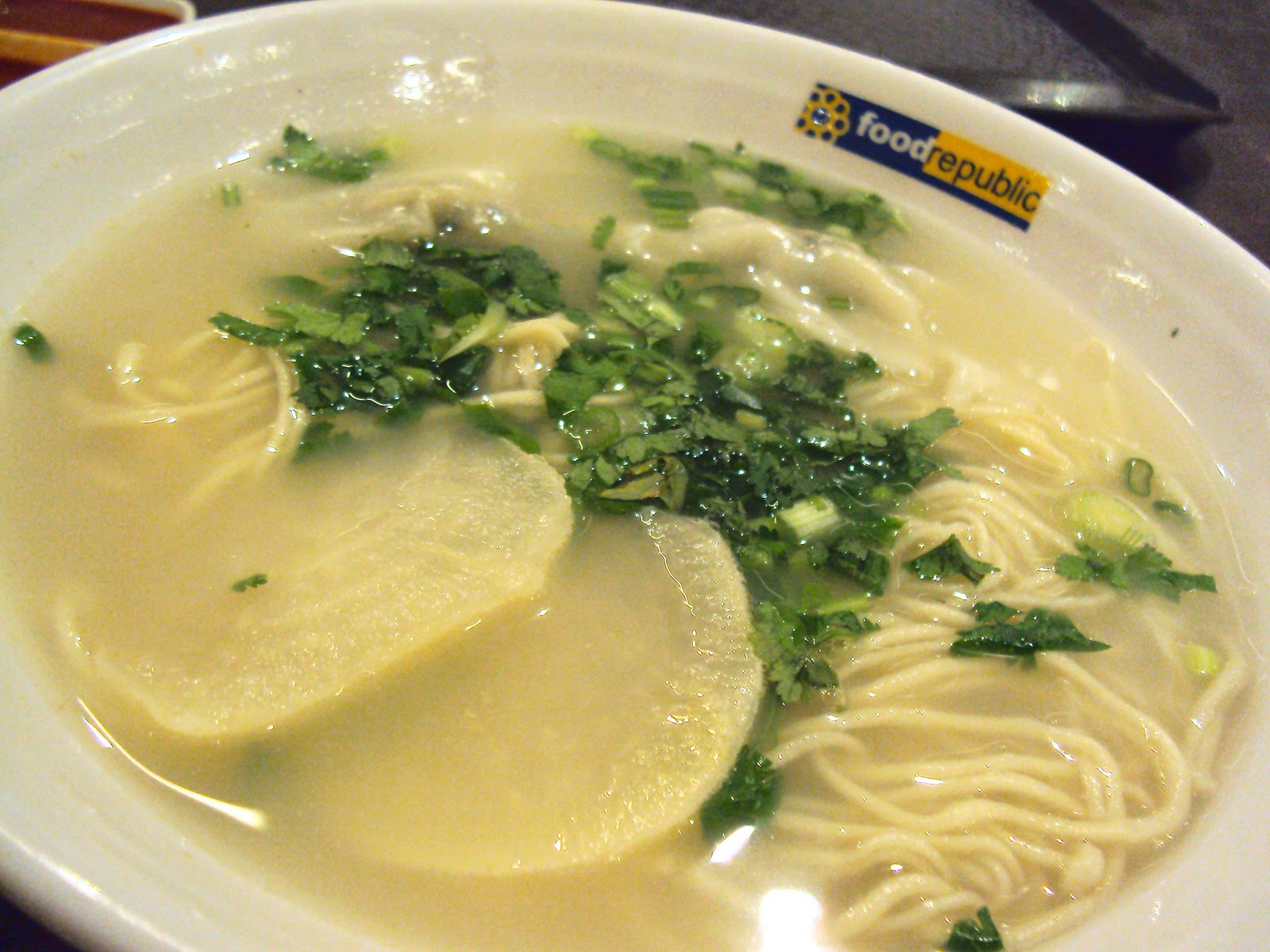 Can’t see the wantans? they were hidden beneath the la mian of course.. heehee. At first I thought that the two big white pieces of round thing were onion. A bite revealed that it was radish. First time having raddish in noodle soup. Lovely…