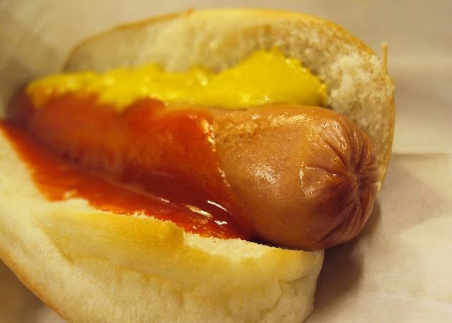 Got a pump of mustard and chilli sauce for the sausage. Pipping hot sausage. Very nice.