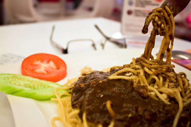 Okay..the spaghetti didn’t taste like spaghetti. It tasted more like yee mee. I didn’t like the spaghetti at all but my girl claimed that it wasn’t that awful in taste and she manage to finish the whole plate of spaghetti. I think it is because she likes yee mee a lot. >__<