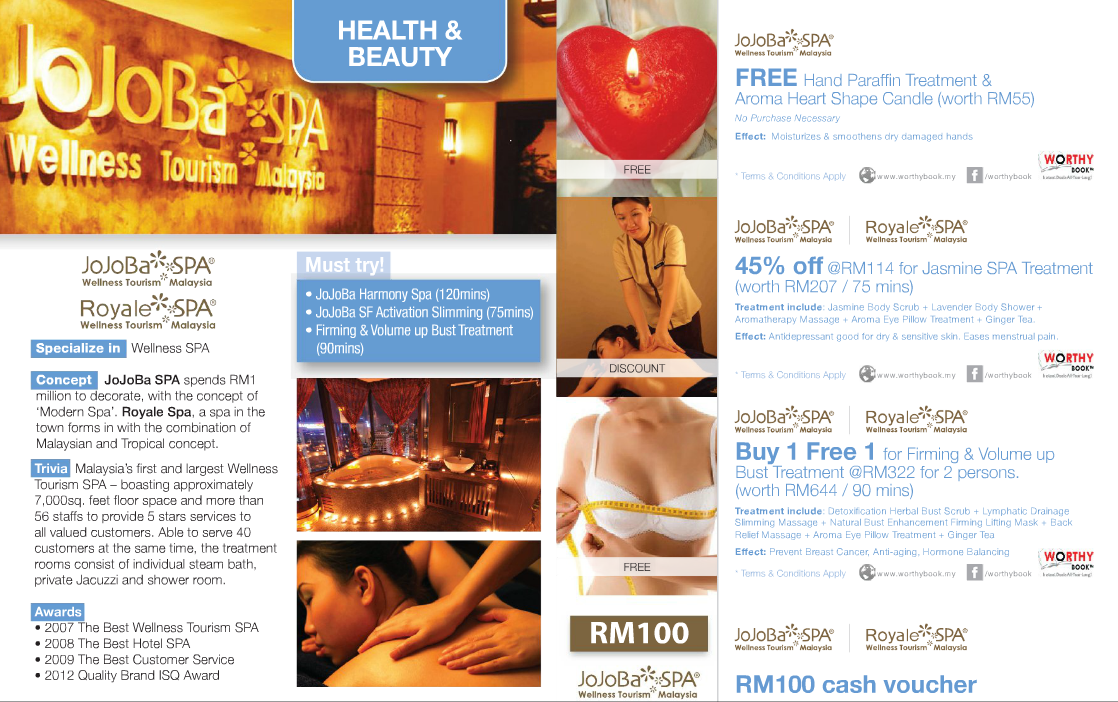 You can get your Buy 1 Free 1 Treatment, 50% Discount Treatment, Free Membership, Free Facial Treatment, Free Gift and many more from the book. Most of the vouchers ended on 31st March 2014, so it is still not too late for you to grab one and enjoy all the deals available.